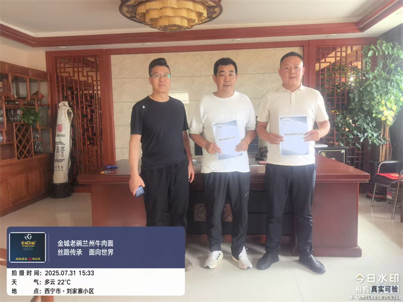 7月31日,這份靠譜與美味正式奔赴“夏都”——金城老碗簽約入駐青海西寧市!當蘭州的煙火氣遇上西寧的高原風,這場相遇本就充滿期待:西寧的街頭,尕面片、釀皮、手抓肉早已俘獲人心,而金城老碗的到來,就像給這桌“青海盛宴”添了一道新菜。想象一下,在微涼的清晨走進店里,一碗牛肉面下肚,熱湯暖了胃,辣油提了神,再抬頭看看窗外西寧的藍天,這份愜意,是屬于“大美西寧”的獨特幸福。