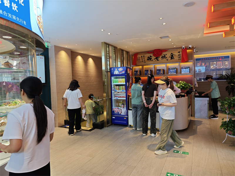 煮面過程更顯時(shí)間掌控的精妙。直徑一米二的銅鍋始終保持著“菊花水”狀態(tài)(將沸未沸的95℃水溫),面條入鍋后隨水波自然舒展,既避免高溫破壞面筋結(jié)構(gòu),又能快速鎖住麥香。經(jīng)驗(yàn)老道的師傅憑借面條浮沉的狀態(tài),就能精準(zhǔn)判斷起鍋時(shí)機(jī),確保每根面條都達(dá)到“外滑內(nèi)韌”的完美狀態(tài)。